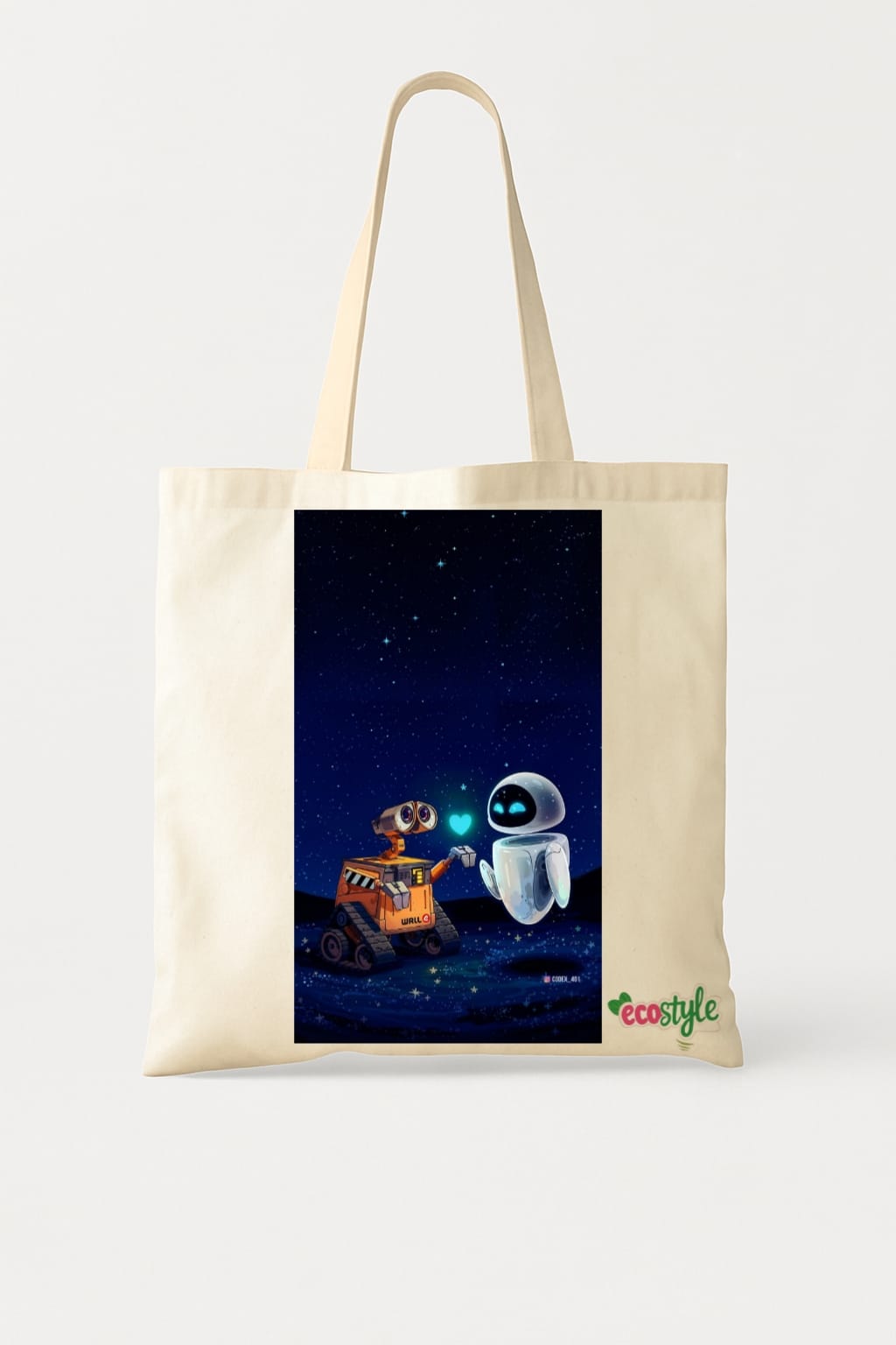"Lleva el futuro en tus manos con nuestras bolsas ecológicas de WALL·E: duraderas, conscientes y con un toque de ternura robótica."